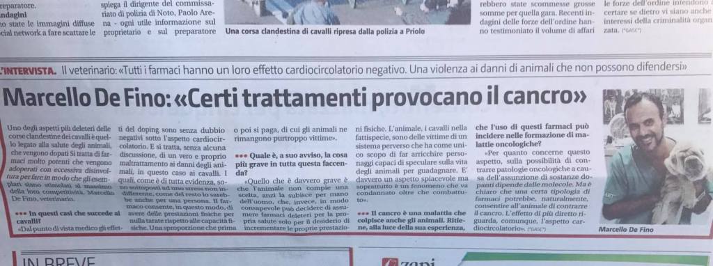 Intervista su ” Il giornale di Sicilia” Pubblicato damarcellodefino3 ottobre 2021Pubblicato in: Medicina VeterinariaTag:#doping, #maltrattamentoanimali Condividi: Fai clic per condividere su X (Si apre in una nuova finestra) X Fai clic per condividere su Facebook (Si apre in una nuova finestra) Facebook Mi piace Caricamento... Correlati