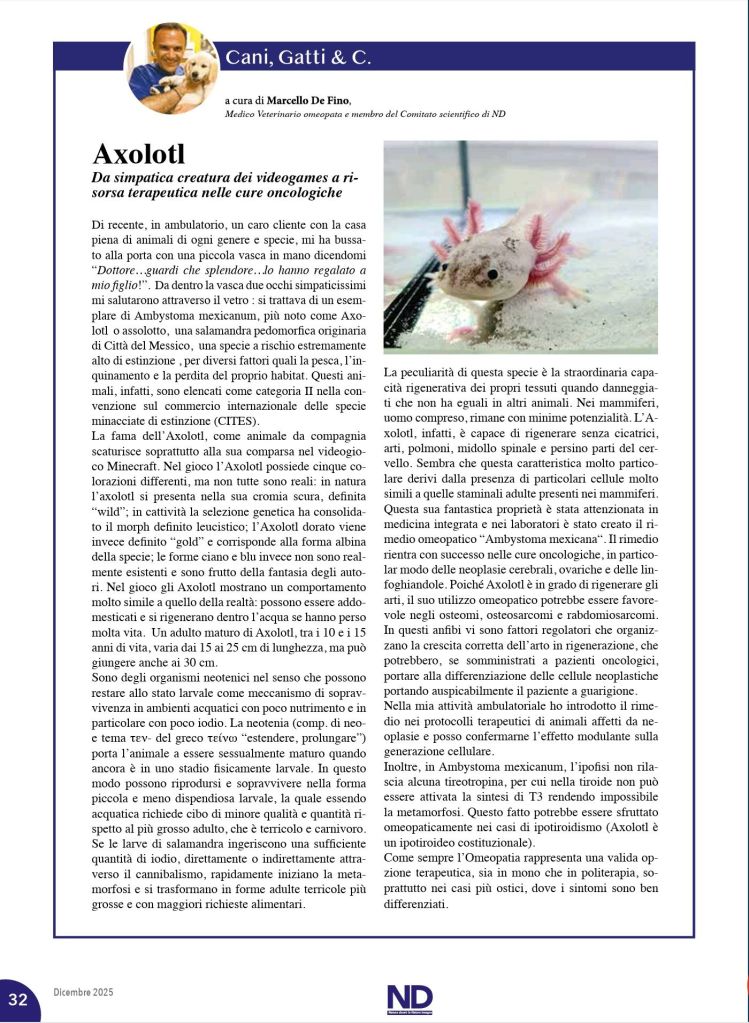 L ‘axolotl, un anfibio prezioso: un pet che rientra anche tra i rimedi oncologici.